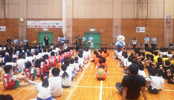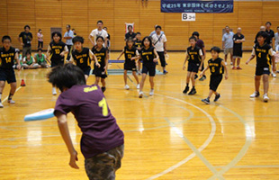 9月8日(日)に、千代田区スポーツセンター(東京都千代田区)にて、スポーツ祭東京2013 千代田区ドッヂビー大会が開催されました。東京都23区の小学生チーム24チームが参加し、熱戦が繰り広げられました。当日は、早朝に2020年オリンピック開催地が東京に決定し、会場内にも横断幕が掲げられ、一層大会を盛り上げました。